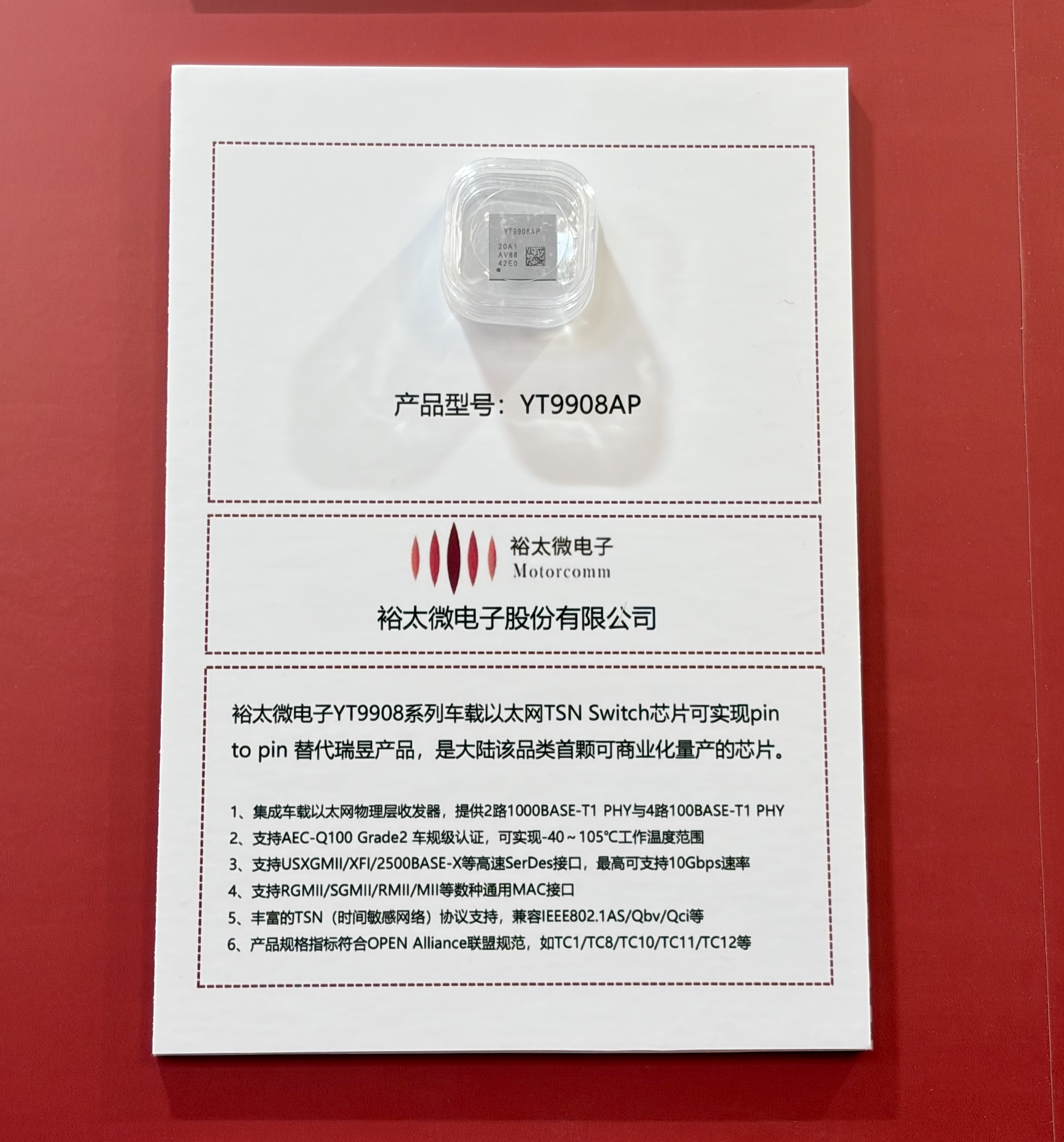 在大会同期举行的“中国芯”产业链生态峰会上,公司车载事业部总经理郝世龙受邀发表演讲,系统阐述了裕太微在车载SerDes、以太网PHY及TSNSwitch等核心芯片领域的最新成果与战略规划。